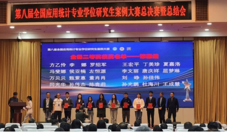 本次大赛自4月开赛以来,全国共有158所科研院所和高等院校的1083支队伍提交案例作品参赛。经过校赛、区域赛、国赛(通讯评审)的严格评审,共有65个案例作品参加国赛现场答辩赛。经现场答辩赛的激烈角逐,最终评出一等奖16个,二等奖49个,三等奖98个;另有32个优秀案例入选“全国应用统计专业学位教育教学案例库”。