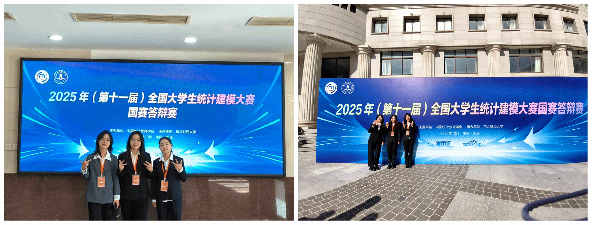 10月25日至26日,2025年(第十一届)全国大学生统计建模大赛总决赛在东北财经大学(大连)圆满落幕。我校本科参赛队伍斩获国家一等奖1项、二等奖2项及三等奖3项,在全国平台上充分展现了我校统计学科的育人成效与学子风采。